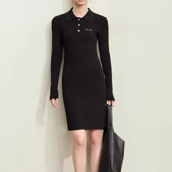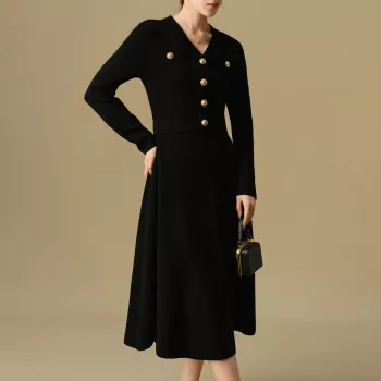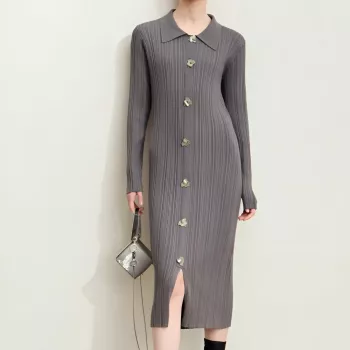 Women’s Knitted Sweater Dress with Button Placket – Elegant Office & Casual Wear