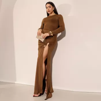 Sexy Thigh-High Split Long Sleeve Maxi Dress for Women