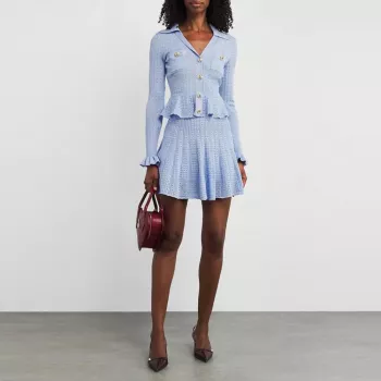 Elegant V-Neck Ruffled Knit Mini Dress for Women – Stylish Autumn Fashion