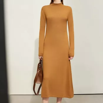 Elegant Women’s Turtleneck Fishtail Skirt Knitted Dress – Mid Calf Length