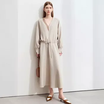 Minimalist Women’s V-Neck Color Splicing Drawstring Midi Dress