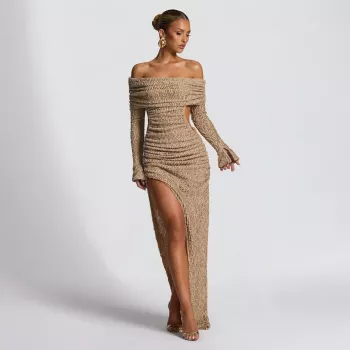 Elegant Off-Shoulder Bodycon Maxi Dress – Chic Nightclub Party Dress