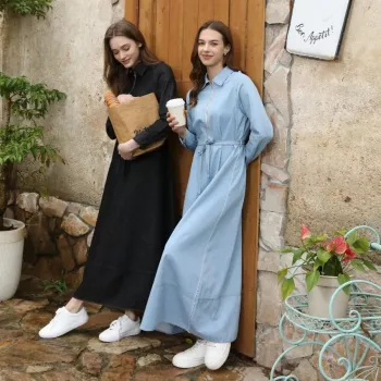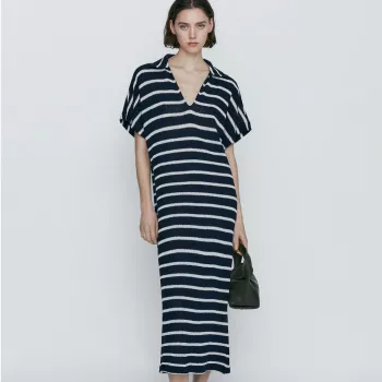 Autumn Casual Striped Polo Neck Cotton Blend Long Dress