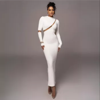 Sexy Turtleneck Hollow Out Bodycon Maxi Dress for Women