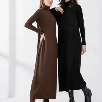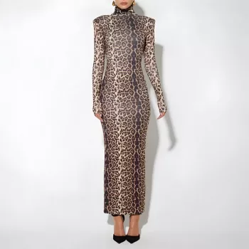 Sleek Leopard‑Print Maxi Dress with Turtleneck & Long Sleeves