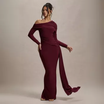 Sexy One-Shoulder Backless Maxi Dress with Ruched Bodycon Fit