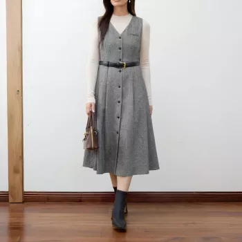 31.1% Wool Sleeveless V-Neck Fit and Flare Dress for Women