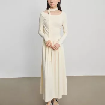 Elegant Autumn Casual A-Line Long-Sleeved Dress for Women – Ankle-Length Solid Color Dress