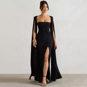Elegant Square Collar Maxi Dress for Women – Stylish Cape Sleeve Gown