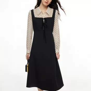 Women’s Korean Style Fake Two-Piece Spliced A-Line Dress – Casual Knee-Length Outfit
