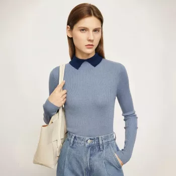 Minimalist Color Contrast Slim Fit Knit Sweater for Women