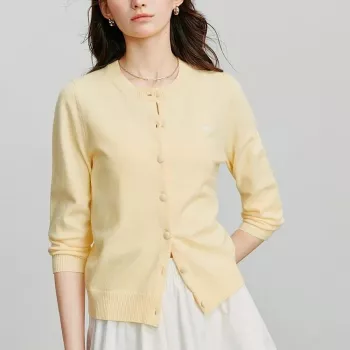 Women’s Knitted Cardigan – Long Sleeve Round Neck Woolen Sweater