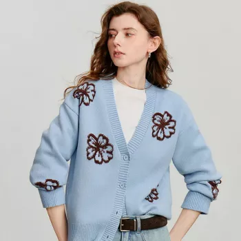 Embroidery Knitted Cardigan for Women – Preppy Style Spliced Chic Button Jumper