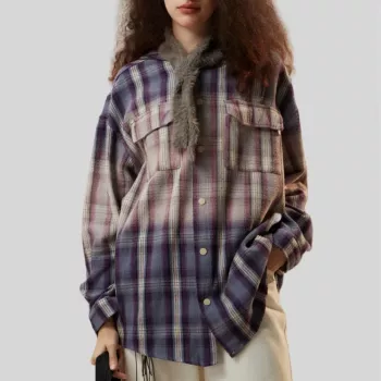 Women’s Long Sleeve Split Splice Shirt – Striped Cotton Blend for Autumn Office
